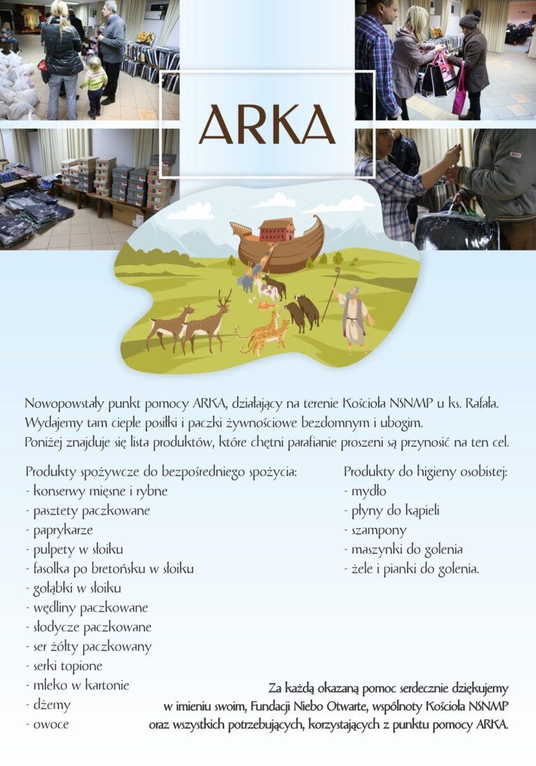 W styczniu tego roku otworzyliśmy punkt pomocy ARKA. Działa on na terenie Kościoła NSNMP w Skierniewicach. Wydajemy tam ciepłe posiłki i paczki żywnościowe bezdomnym, ubogim i zagubionym w swoim życiu.