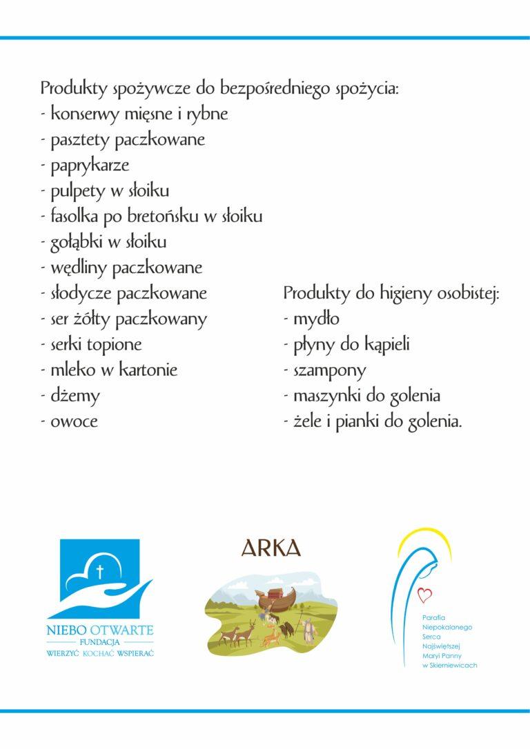 Za wszelką okazaną pomoc serdecznie dziękujemy w imieniu Fundacji Niebo Otwarte, wspólnoty Kościoła NSNMP oraz wszystkich potrzebujących, korzystających z punktu pomocy ARKA.